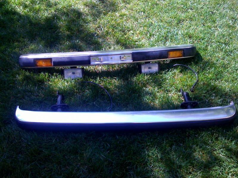 Clean bumpers, came off a car that had 70k miles. Everything original. Note that right fog has a cracked lens. All worked when I took them off the car. Front and rear shocks are in hand, but not attached to back bumper.