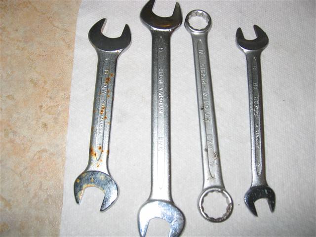 3 different variations on the 17/19 combo wrench, and one 12/13 combo. I can't tell you what cars they were out of or their vintage. Some chrome peeling and surface rust, but still very serviceable. How's $20 shipped sound?