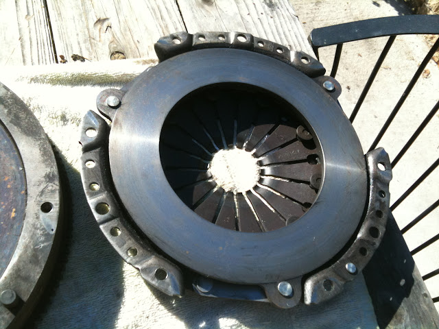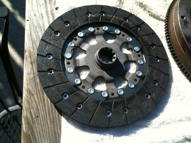 Sachs pressure plate and Luk Clutch disc. These were installed in my track car in February and have also seen the same 24 hours of use as the tack welded plate above. Yeah, they've been used hard in those 24 hours, but that's all the use they've seen. You can still see the factory lettering in the mating surface of the clutch...basically brand new.