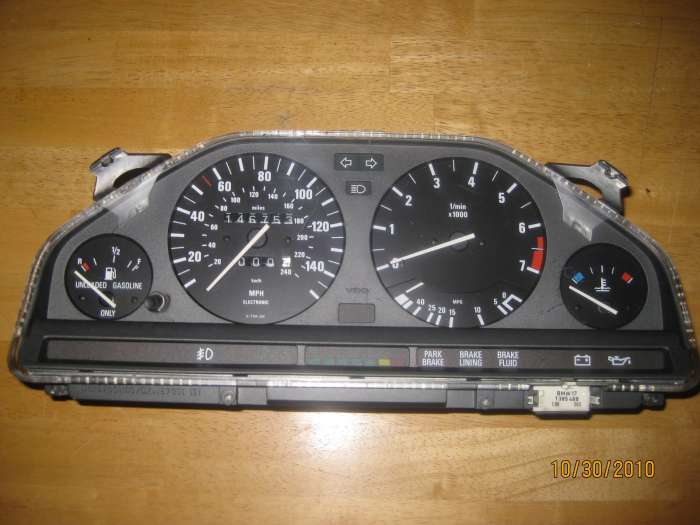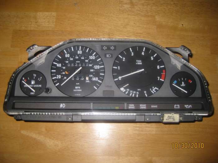Anybody need a spare or replacement cluster for their 'i' car? I have 2 for sale. The VDO is from an '87 and the MotoMeter is from a '90. As usual, the odometer and trip odometer gears are broken. I did test each clusters in my car for a few days and found that everything (other than the odometer) worked as it should.