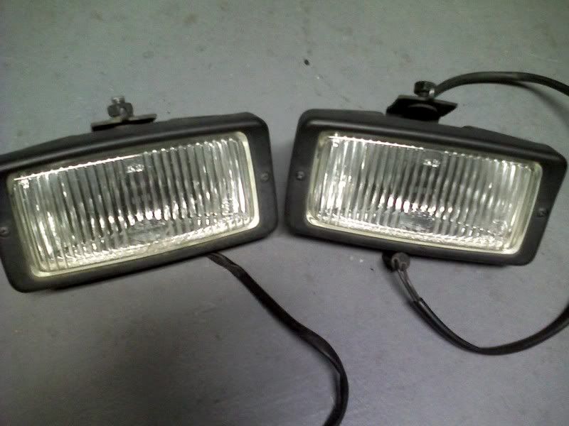 Hella foglights that mounts under the bumper. Has the bracket/nut to mount under the bumper. Also has the factory round connector. One of the lens has a scuff on the bottom, but not cracked, see picture.