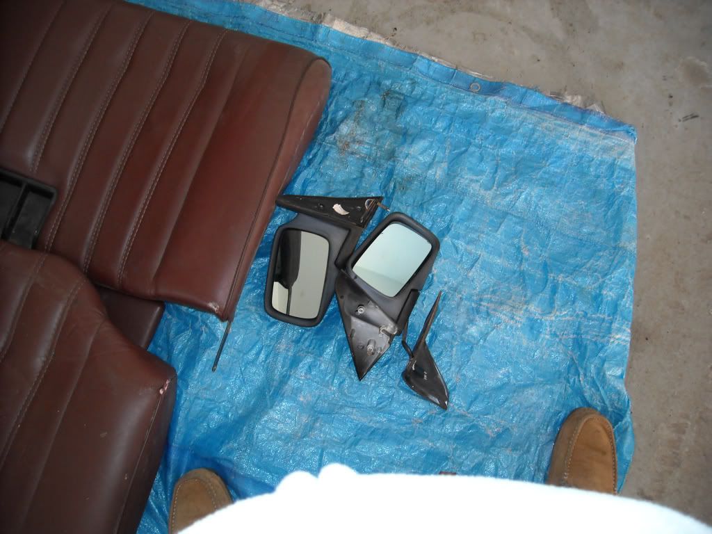 black primer mirrors with good glass, motors, and no cracks. need a hit of black paint to be perfect. 30 for the pair