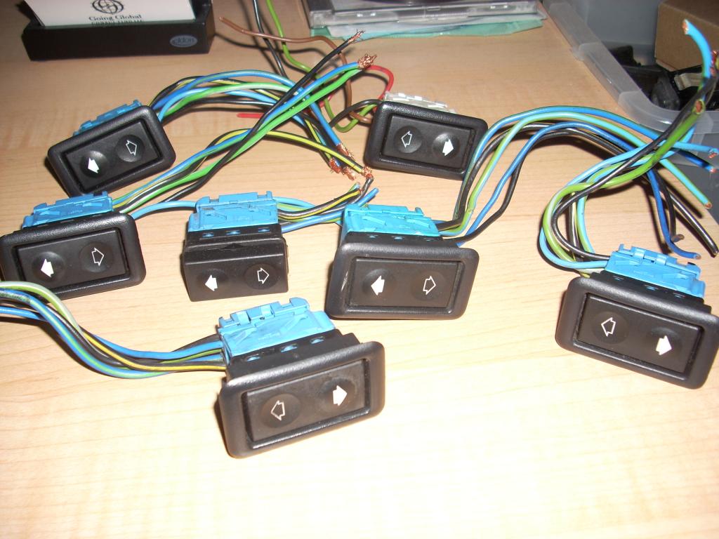 Up for sale are 6 E36 blue base window switches and 1 white base window switch.