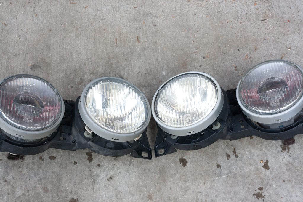 Here is a really nice set of ellipsoids. There is minimal pitting, I would say less than average. The adjuster screws all work perfectly, I had to change some to make sure they all worked. bulbs are included, not sure if they are good or not.