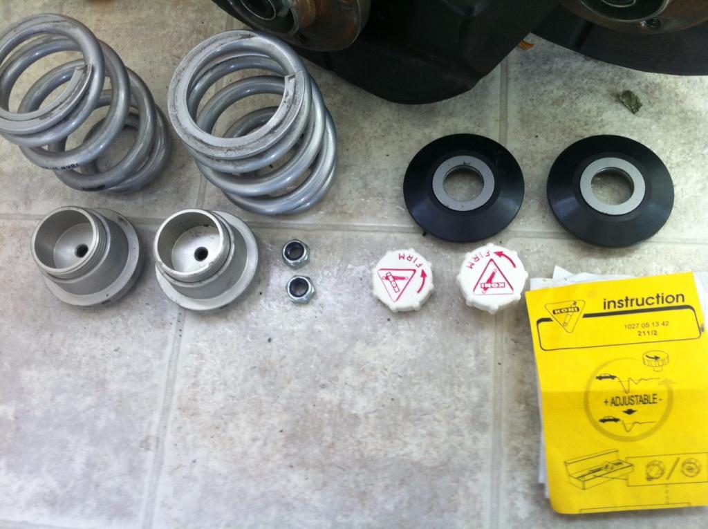 Springs are 500f/700r. The housings are custom built from OE e30 struts. They come with Ireland Engineering race camber plates and good wheel bearings. The dampers are double adjustable Koni's. All involved they cost me around $3000.