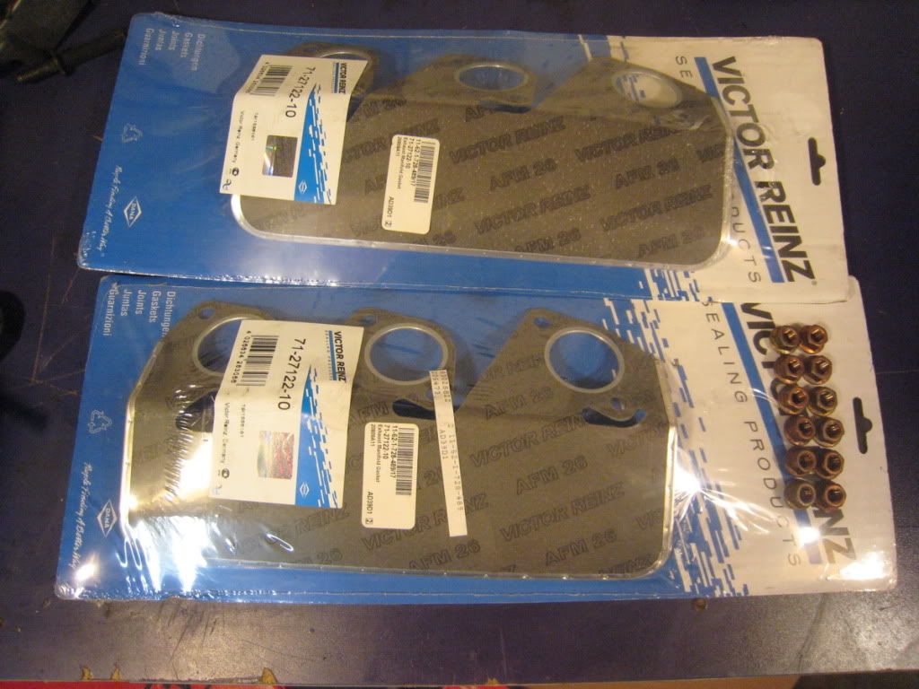 Got a fresh pair of gaskets here. They are about $11 a piece new. I will also throw in the OEM oval locking nuts you need since all of your existing nuts will come out attached the studs when you remove your original exhaust.