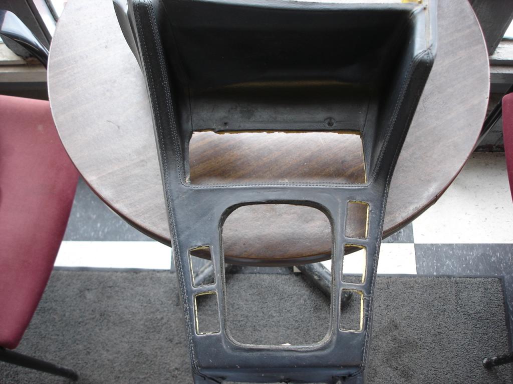 Rear console has a seperated seam on the right front, and the leather is pulled up fron the storage pocket towards the rear.