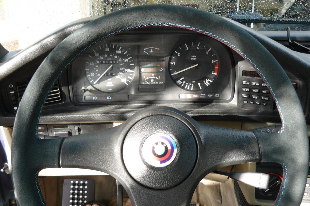 This is a Sport wheel from my E28 that was recovered in sued with the M colored stiching. It is in excellent shape. The center emblem is not included but the stock BMW emblem is.