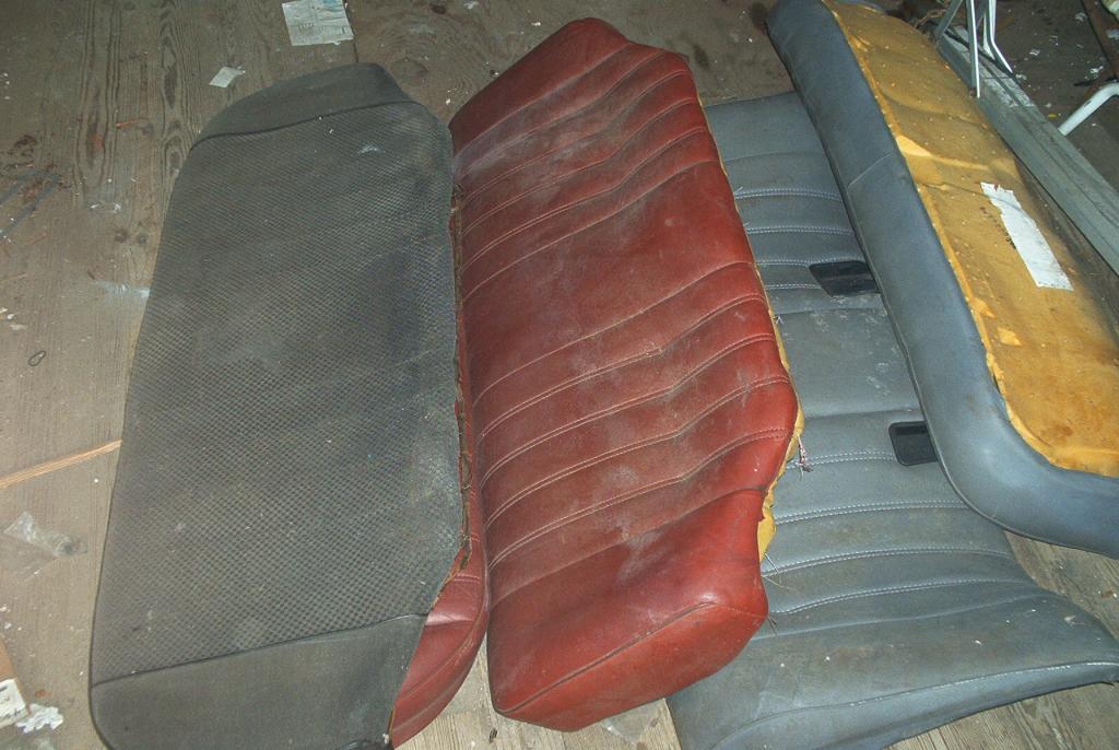 One tan leather with rear headrest, also cardianal red, and an early houndstooth cloth, I guess these could be used to repair other seats also.
