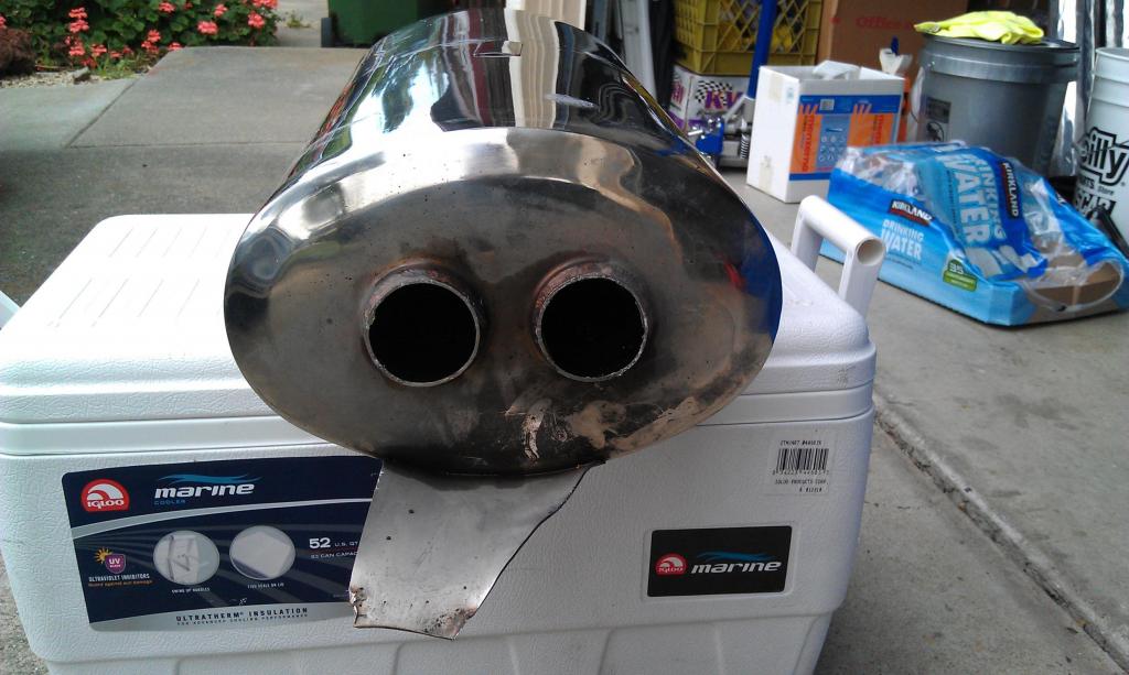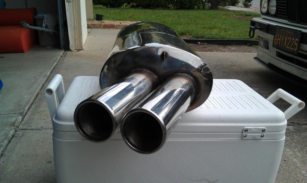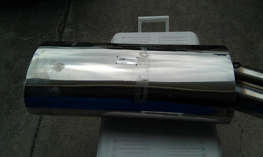 Selling the muffler portion of the catback exhaust I had on my car. I reused the pipes for my magnaflow so I'm selling only the muffler of the Topspeed exhaust. No dents in the muffler. On one picture it's the reflection that makes it seem like it is. This is not the IE copy. 3 inch rolled tips and had 2.25 inch piping before the muffler was chopped off. The length is similar if not the same as the stock muffler. PM me with questions since I will have limited access to the computer in the evenings. $125 shipped which includes the paypal free. Thanks