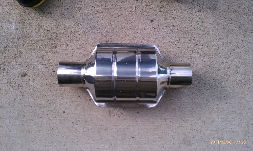2 1/2 inch "cat converter" completely straight through. Good for passing a visual inspection but still run straight pipes. 50 shipped