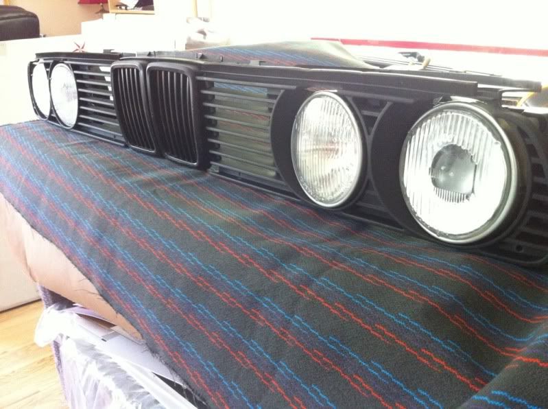 Included in the package are mint US grills, they are OE not aftermarket and have not a single crack anywhere. Foam on top is 100% on both. Also included is an aftermarket kidney painted black years ago, one of the two tabs underneath is broken, but still mounts easily in any e30.