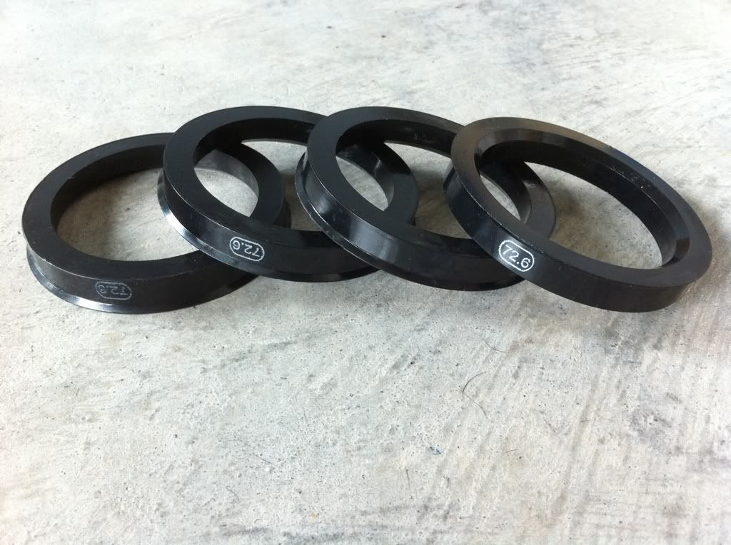 I have a set of 4 hubcentric spacers that are a 57.1 to a 72.6. They are a black plastic and have never been used except for one that has some scuffs. I bought them thinking they were the size I needed but was wrong.