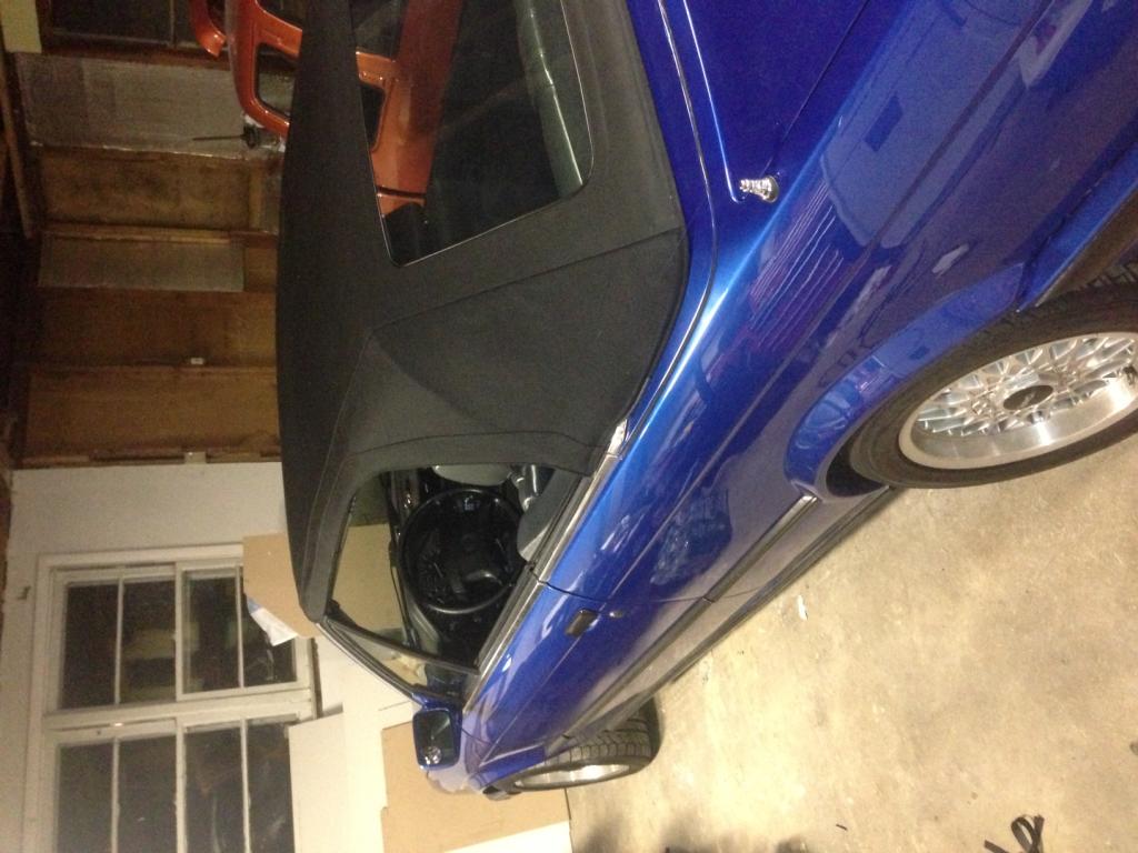 In the pics above, the blue car has a power top. For this car, I used the same exact top I always use - same top quality factory german cloth, and the top continued to work perfectly after installation.