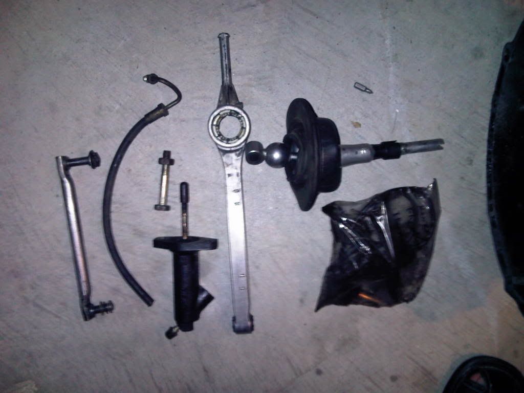 This was my spare, just sitting in the garage taking up space. Approx 135k mi. Shifted perfectly, no damage or visible leaks (but always good to replace seals). Comes with shifter setup + slave cylinder + sensors. $150, will ship (but can't guarantee it'll arrive in one piece due its weight and awkward shape). Sorry for the crappy pix.