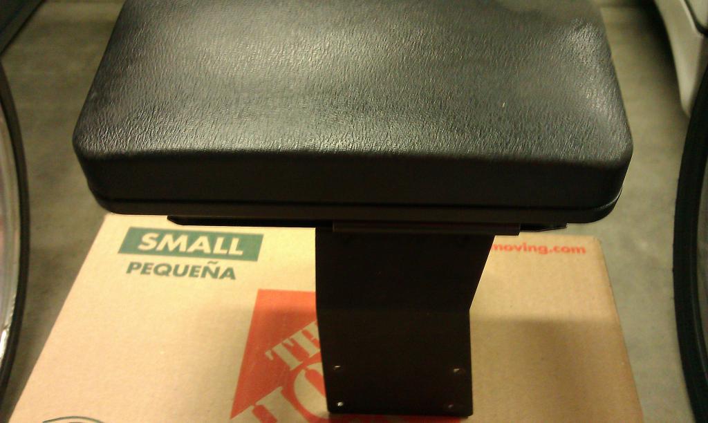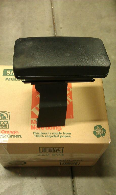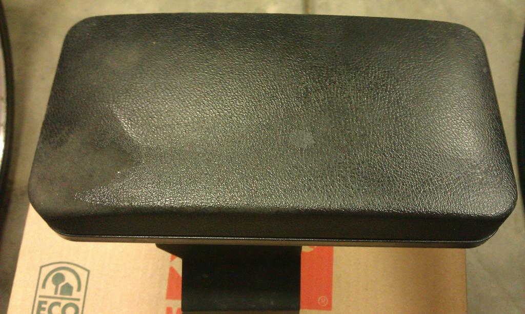 The pad is a little worn on one corner (see picture). Comes with mounting support brackets. Cup holder plastic was damaged and NOT included.