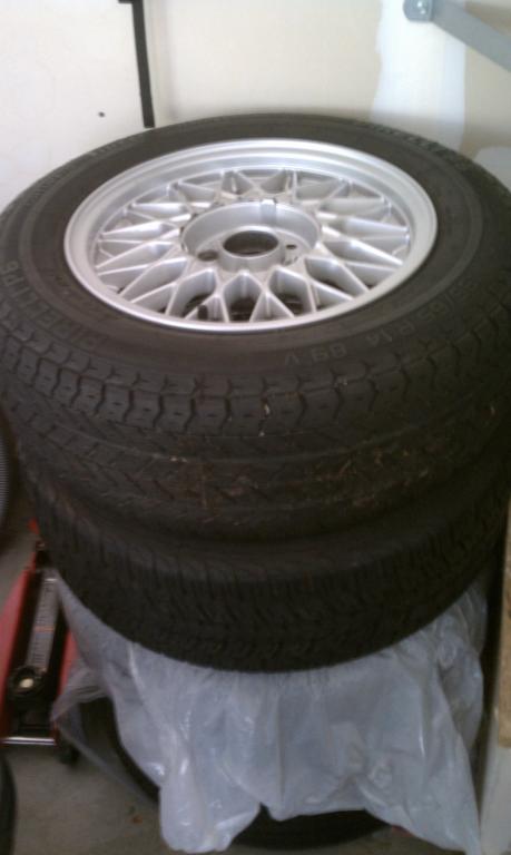 Came off my 89 e30 and in clean condition. Just needs to be cleaned. No rash. $200 for all. Sorry but no caps. Tires got 75% tread. Located in bay area.