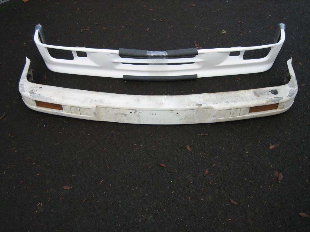 1) M Tech2 Front bumper from a M tech2 vert that was in a fire. No warping, just 2 spots on the top of the bumper on each end that would need work when repainted.