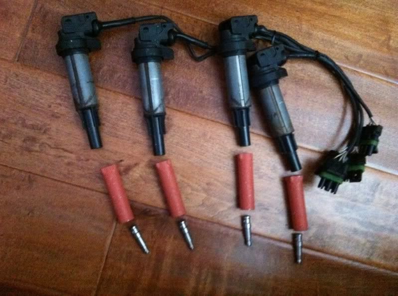 Bosch COP 0 221 504 100 (Germany) x4 w/ Deutsch type wire harness, insulators and spark plug extensions (custom)