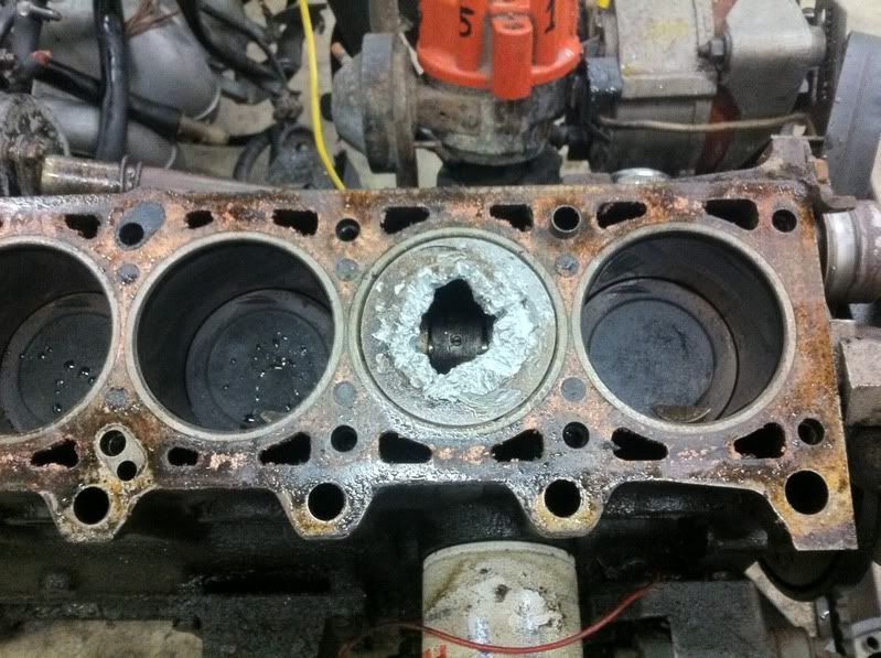 Just pulled the motor apart today. Aside from the huge the hole... All of the pistons have valve damage from a timing belt snap. The PO pulled the oil pan, cleaned out all the bits of piston, then bolted the valves for that cylinder closed. Unplugged the injector and got it running again on 5 cylinders.Want to be sure your getting QUALITY parts? Check out my feedback!