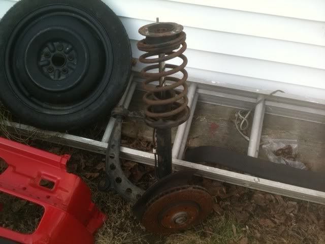 Passenger side strut housing+Strut+Bearing Plate + Stuck Spring +Lollipop+ +Control arm with Ball Joint cut off $20