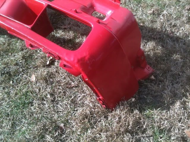Late model front valence. Has a dent in the driver side front area. Not too bad. Ill get pics up soon. I sanded it down and re painted it Rustoleum's Sunrise red which very closely resembles brilliant Rot i Hear. It has both brake ducts and the little middle oil cooler grill thingy. and all the clips for the lip spoiler. SOLD Firm