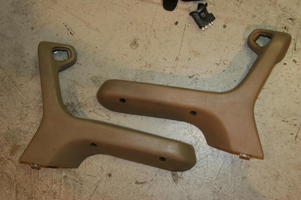 Up for grabs: tan rear seats, rear panels, coupe door cards with armrests and handle bezels, and the rear deck with speakers and third brake light. Seats are in decent condition, a few small rips and a scrape/blemish on the top right of the upper seat portion. Seats overall have some fade due to the sun. Included is all the necessary screws and fasteners, although one door card is missing two push fasteners.