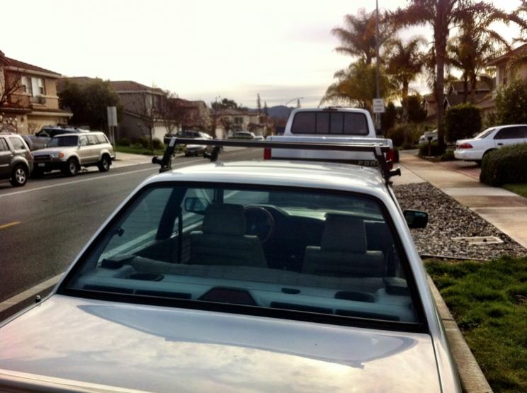 Rain gutter design roof rack, I decided to part with it since I don't have the need for it (road biking season isn't optimal yet). The bars are 42" long, it's a perfect fit and leaves about 2 inches of space after both ends of the tower. The towers are in perfect shape and the rubber mounting supports isn't showing any wear. It also comes with locking keys and plug ends for the bars. Im asking 125 + shipping. Thanks for looking.