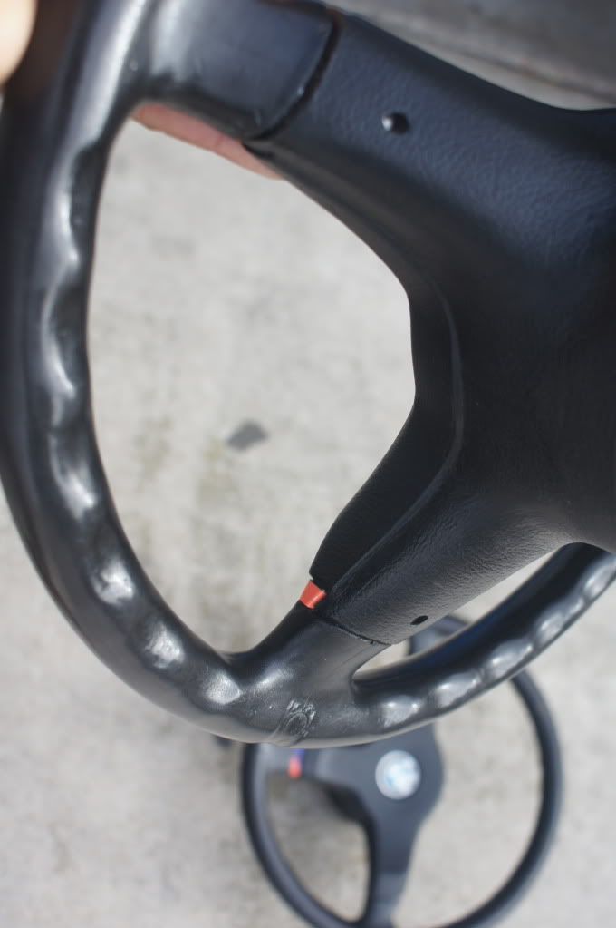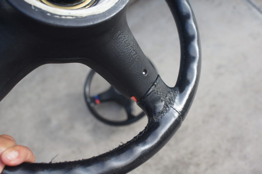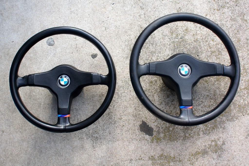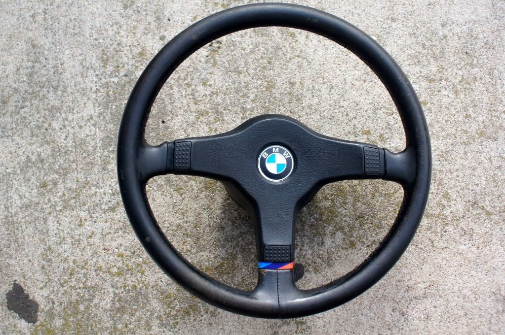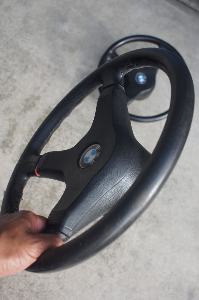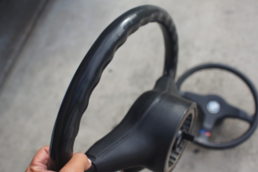 I have two M-tech1 steering wheels both with brand new M striped logos. I stripped the leather completely off of one and for the other, the leather is broken in properly but could use a dye job. If you want it redone add $15 to the price. $100 shipped for the left one (see last image) and $60 shipped for the leather wrapped wheel.