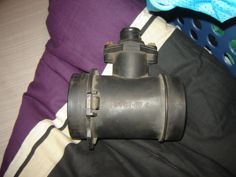 NVm50 MAF, piece is chipped off shown in picture but won't affect working order. Pulled off in working order, has sat around for a while in the car.