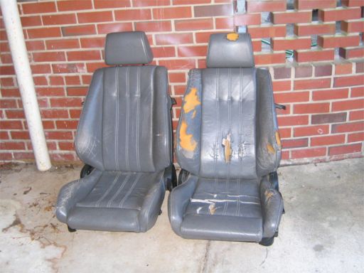 I am giving away my sport seats from an 88 325is. As the picture shows, they are ripped, and I think part of the frame may be broken. The seat back moves if you push it sideways. It can probably be welded back.