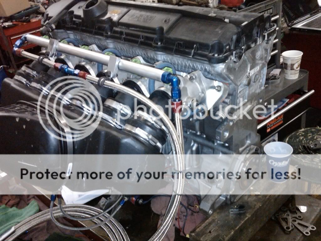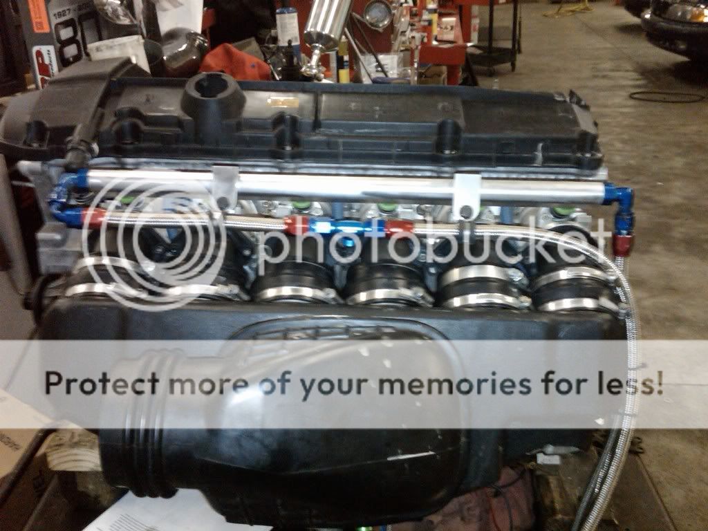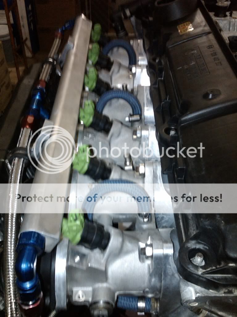 I can pull the motor, and it goes as it sits in the e34 with wiring harness, minus the blower and bracket (see first pic in first post).There's a 250 tranny attached to it, worthless to me so it can go with it too. I don't think it would have lasted very long anyway. I haven't been in the car for a while, it's at a buddy of mine's private shop in TN, and I haven't had him check to see if the airbox is in there. It should also be noted that in the pictures, there's nitrous plumbing, but there is not any in the final version of this. As a forgotten side note, those are Ford 42lb injectors.