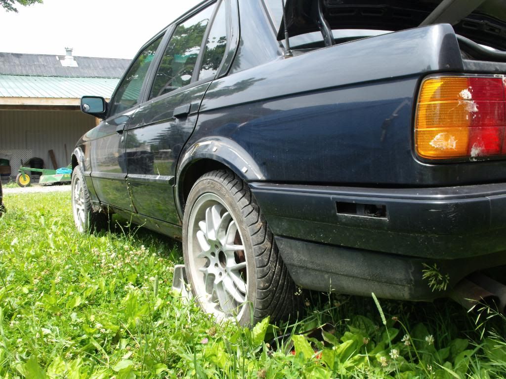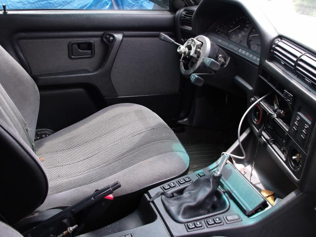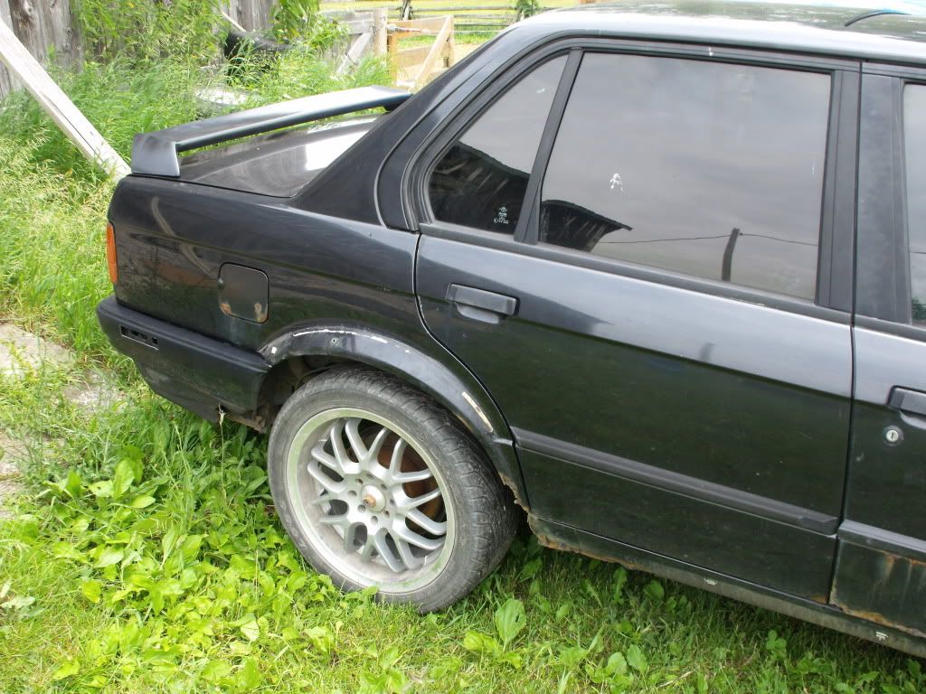 Its an 09/88 with plastic bumper conversion. 5 spd, 4 door, black on grey comfort cloth seats.