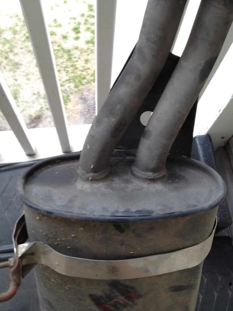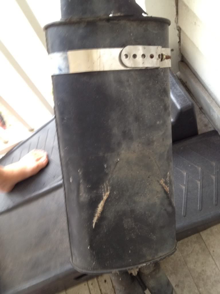 no rust, not used for long it seems, has a dent on bottom on muffler.