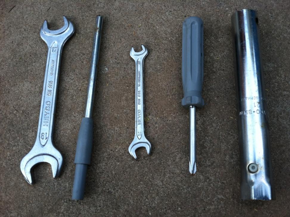 It's the spark plug locator tool; the plastic bit helps you find your spark plug hole. The metal bit is supposed to be inserted into the end of the spark plug tool in order to turn it