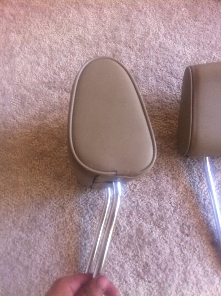 clean tan head rests. physically they need to be cleaned a bit but other than the grease on em. thyre pretty damn straight. by far the cleanest one ive seen. came out of a 87 4 door. i actually think theyve been redone.