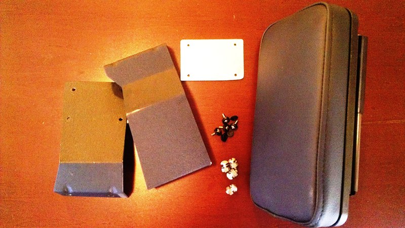 Hi i have a nice armrest that i recovered. Comes with all the mounting hardware. Cup holder has both wire cups retainers. Very nice condition, a few scuff and scratches on the metal parts.
