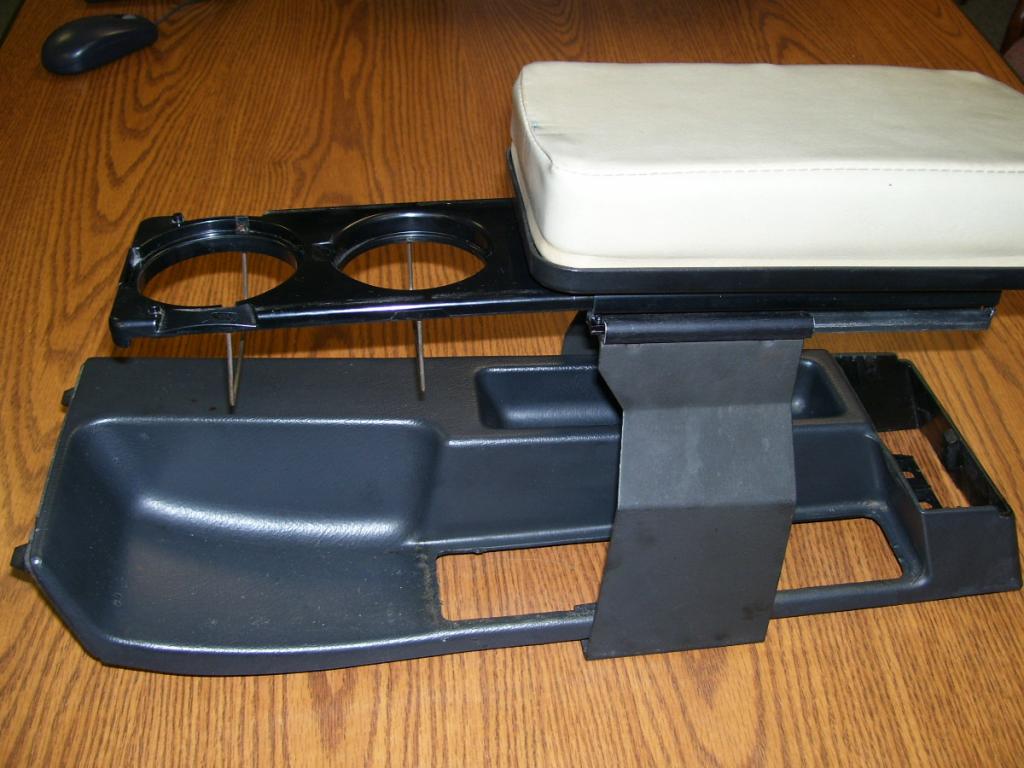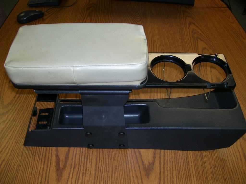 New Screw covers for side bracket. Good E-brake console predrilled and ready to mount (you don't have to drill your mint one). Top pad has been recovered in Pearl Beige. --SOLD--