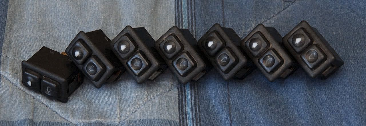 Illuminated window switches all tested and working, set of 6 (7 shown, you'll get 6), $30 shipped.