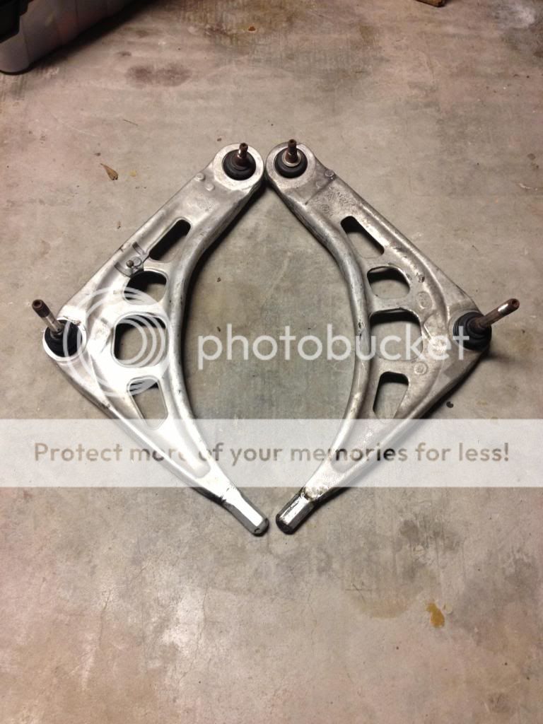 Next I have a set of e46 control arms. The ball joints are in great shape. They are very lightweight and there are documented threads on people who have swapped them.