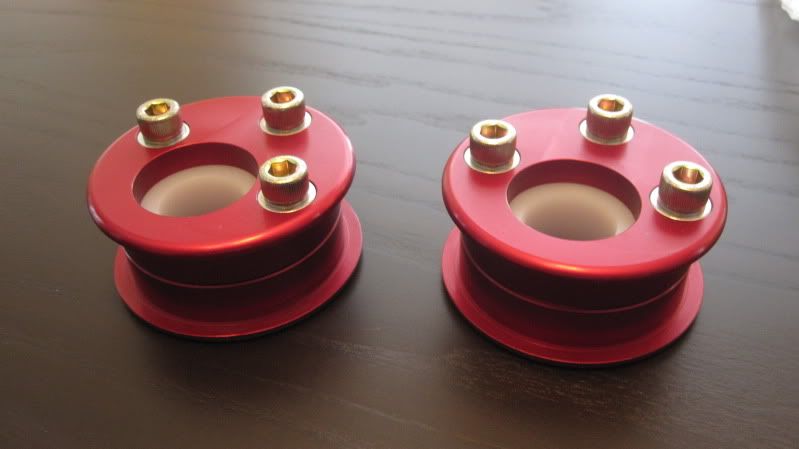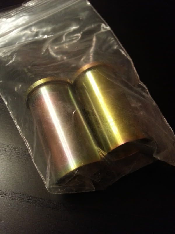 Mine have a steel sleeve that is first pressed onto the end of the control arm. The little white delrin insert pictured in the first pic then slides over that sleeve. I think GC makes a CA bearing and bushing style if I am not mistaken. Those pictured in post #7 might be the bearing style CAB opposed to what is for sale in this ad. My GC bushing style CABs are below.