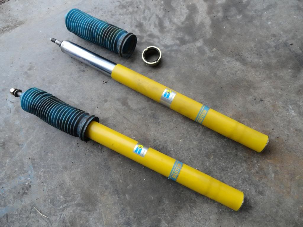 Front late E30 Bilstein fronts with boots and all hardware. I bought these used but never installed them, so I have no idea about their condition, other than they seem to rebound alright and they're pretty clean. There are no marks at all on the pistons. I never got around to installing them, and now I kind of need the money, so they've got to go. $200 + shipping.