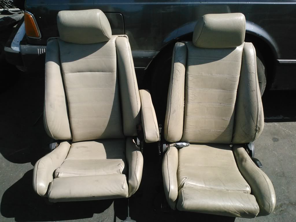 hey guys, trying to get rid of some things. firstly, i have a pair of 6/10 manual sport seats from an e24. they leather is pretty much intact, but they do need some love. functions work and hold firm. driver's seat looks crooked but was propped up on an uneven driveway in the picture.
