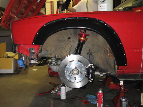 We've decided to upgrade both the front and rear kits on the race car, so this BBK from UUC is now available. Below is a pic when we installed it. This kit is no longer available and is not their smaller, direct bolt on kit. This was their larger race kit for 17" wheels.