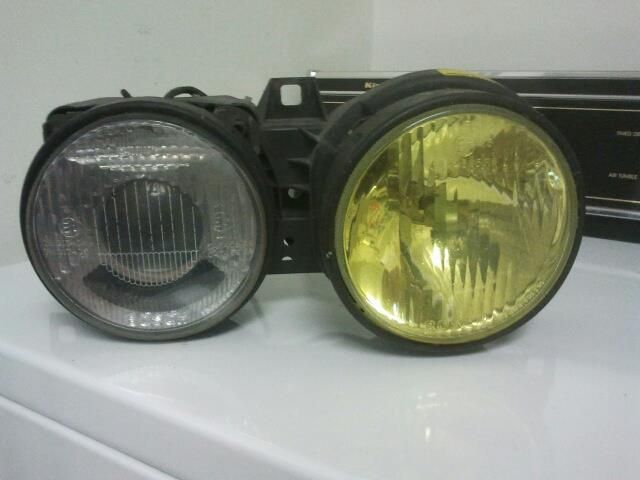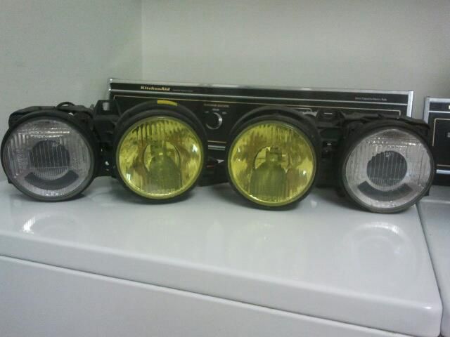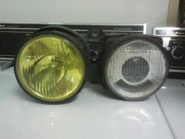 Bosche Euro smilies with 6000k HID's (bulbs and ballasts included). Perfect lenses with yellow lamin-x on the high beams and clear lamin-x on the low beams. Black headlight rings. HID's only have about 300 miles on them