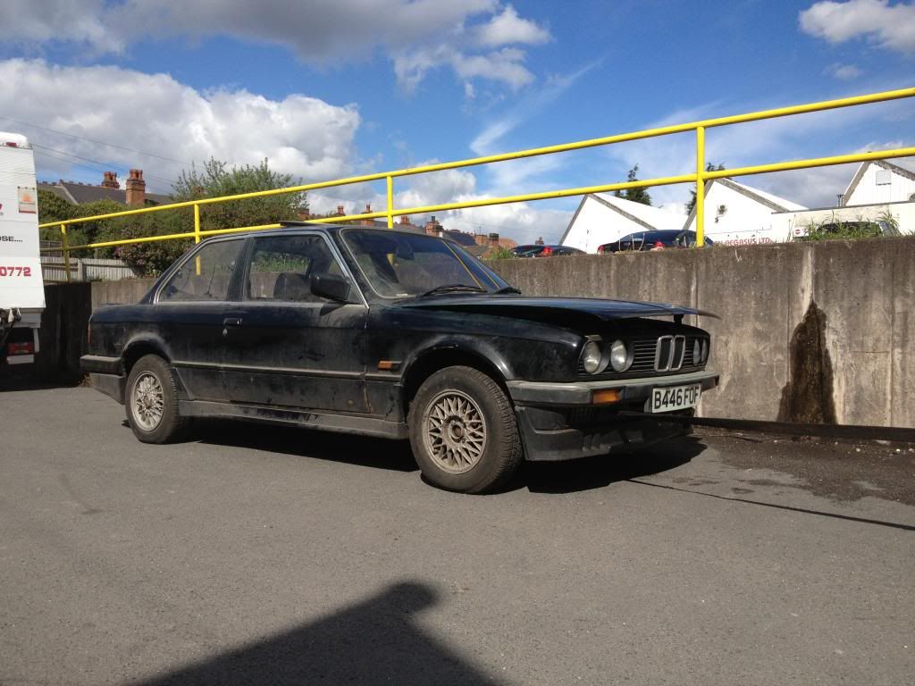 Its a 1985 320i in schwarz black and has a pretty old school Zender or Pfeba kit fitted.