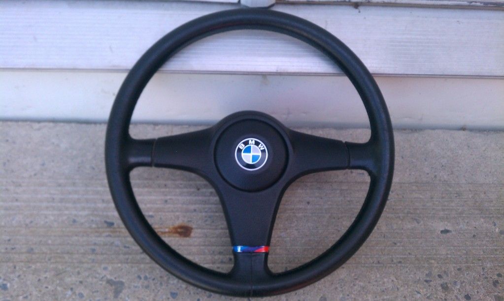 Factory E30 Leather wrapped sport wheel modified w/m-stripe $65 shipped!