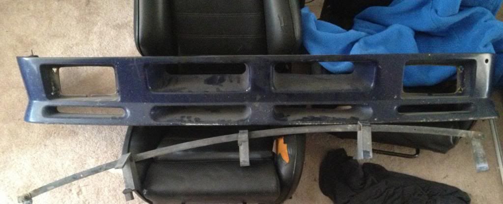 Just like the ad states, early model is front airdam. Comes with the mounting bracket, but only two mounting points are intact if you decide to use it. Its an aftermarket color, like a darker blue. In really nice shape overall!