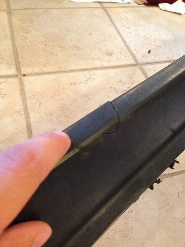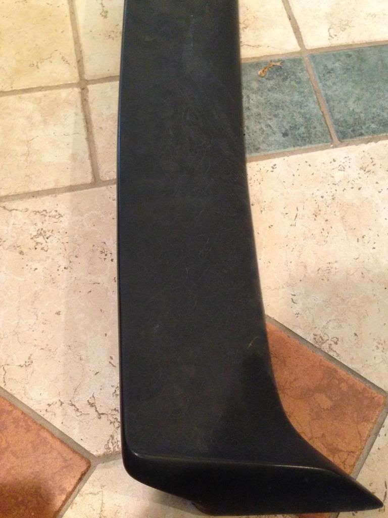 condition is good to fair. there's a small rip in it which i'm pointing to. that piece is attached. it's not fallen off. a little filler would make it perfect if you wanted to paint it black after. it's actually pretty hard to notice as you can see in the picture showing the entire spoiler.