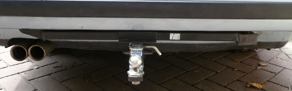 Custom built receiver hitch for plastic bumper cars. You know that there is no option from Dalan or anyone else to have a real receiver hitch for the late model cars. This is a custom built one, it attaches to the bumper bracket on the driver side, the tow hook on the passenger side, and 2 holes get drilled into the spare tire well. The sticker claims a 2000lb max trailer weight, but I wouldn't. I used this to pull a 4x4 harbor freight tire trailer for years, but took it off to save the weight now that I have a tow vehicle.